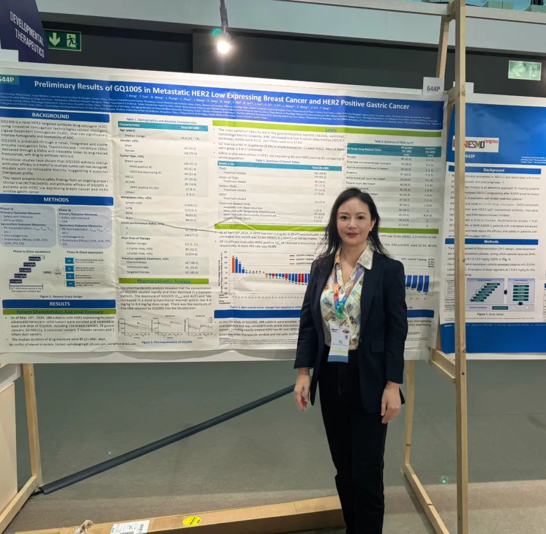 编者按:在2024年ESMO大会上,复旦大学附属肿瘤医院王碧芸教授参与的GO1005 1a/1b期研究以POSTER的形式在ESMO大会上亮相,引起了广泛关注。本研究不仅验证了GQ1005在HER2低表达乳腺癌和HER2阳性胃癌中的疗效与安全性,还为其后续的临床应用奠定了坚实基础。《肿瘤瞭望》特邀王碧芸教授深入剖析GO1005 1a/1b期研究的背景、试验设计、初步疗效及安全性数据,并展望其在未来联合治疗中的广阔前景。