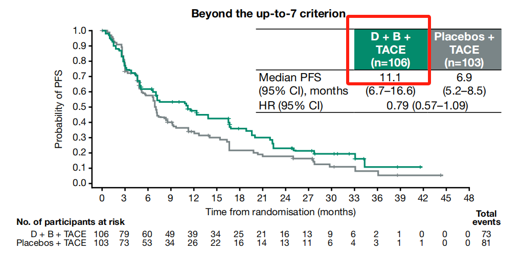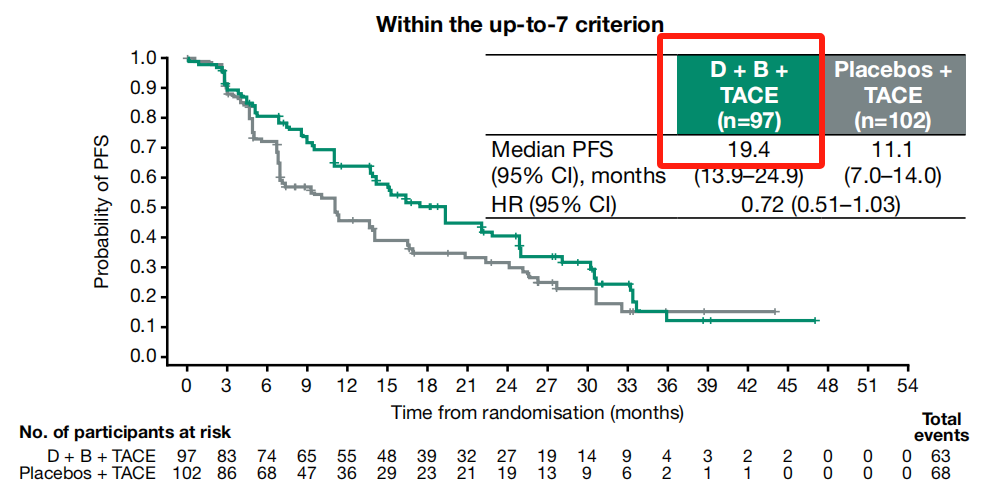 △EMERALD-1研究根据Up-to-7分层的OS结果