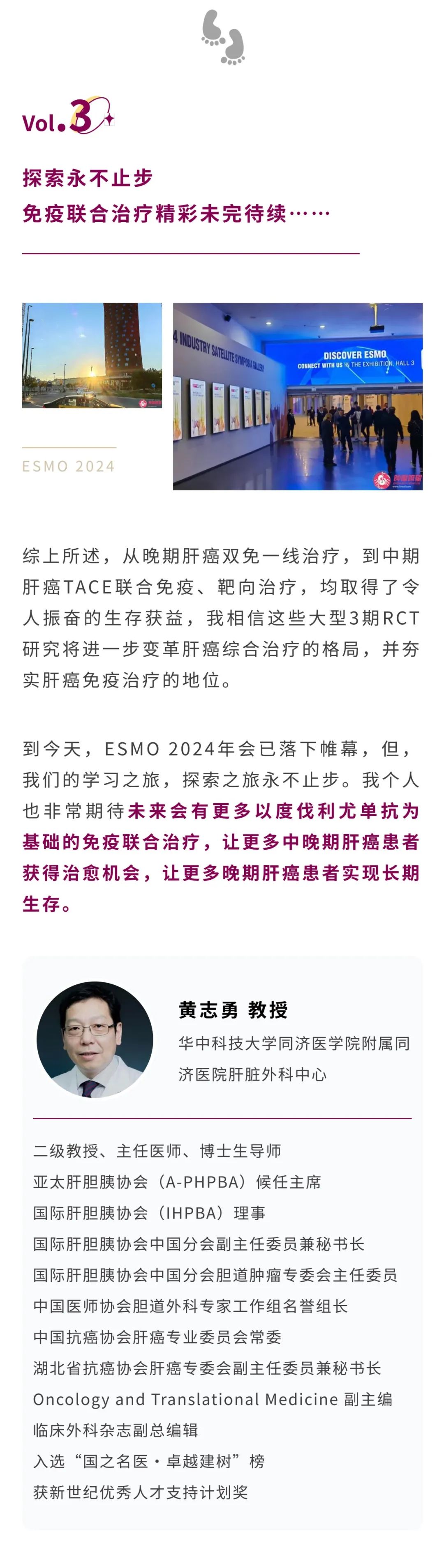 接下来,让我们一起跟随华中科技大学同济医学院附属同济医院黄志勇教授的脚步和视角,一起走进ESMO,领略肝癌免疫治疗的前沿进展。
