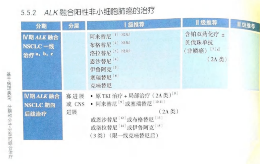 CSCO指南更新:《CSCO非小细胞肺癌诊疗指南(2024版)》在Ⅳ期ALK融合NSCLC部分有更新,包括一线治疗中“洛拉替尼”、“阿来替尼”、“布格替尼”均作为优先推荐。