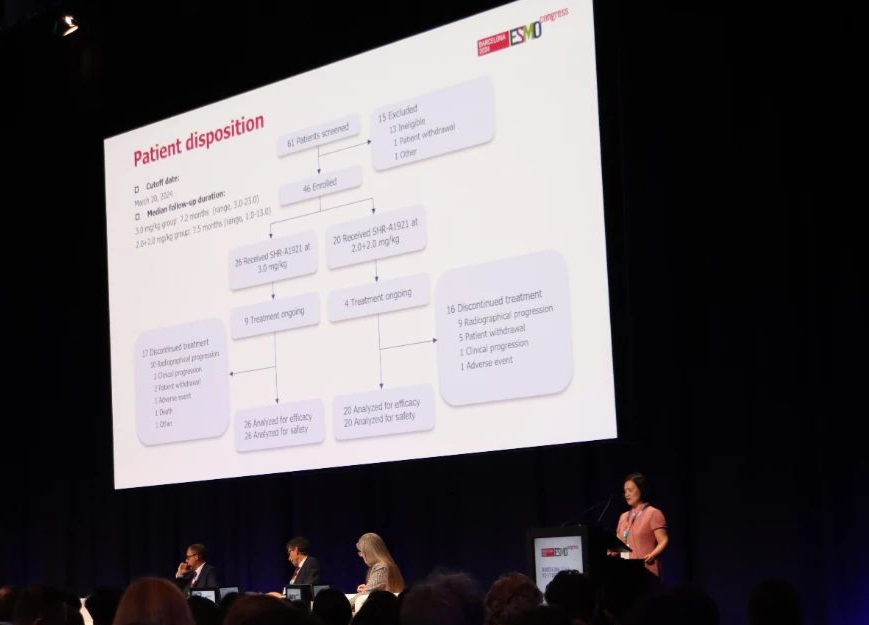 在2024年欧洲肿瘤内科学会(ESMO)年会上,湖南省肿瘤医院唐迪红教授代表研究团队报告了SHR-A1921首次人体试验中铂耐药复发卵巢癌(PROC)队列的研究结果。