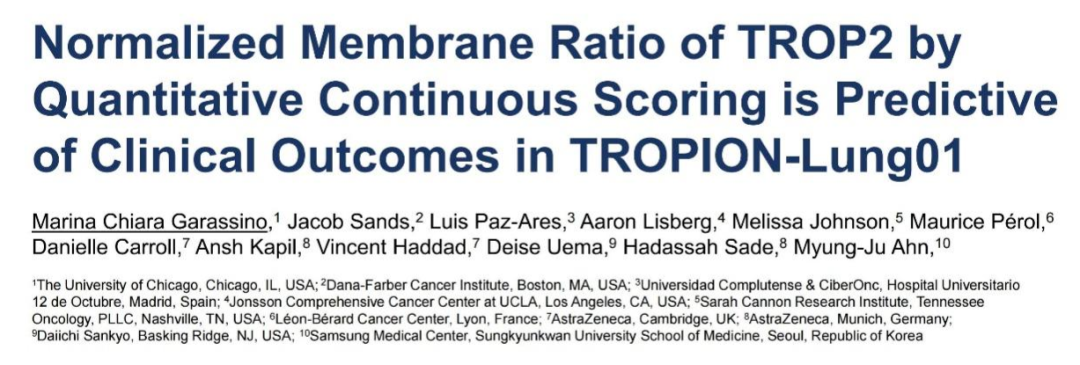 通过定量连续评分方法(QCS)测定TROP-2标准化膜比例(NMR)预测Dato-Dxd的疗效——来自TROPION-Lung 01研究的探索性分析