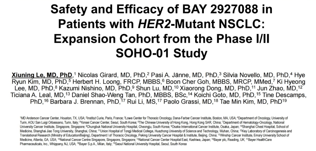 BAY2927088在HER-2突变的NSCLC患者中的疗效及安全性:一项1/2期临床研究的队列拓展数据(SOHO-01研究)