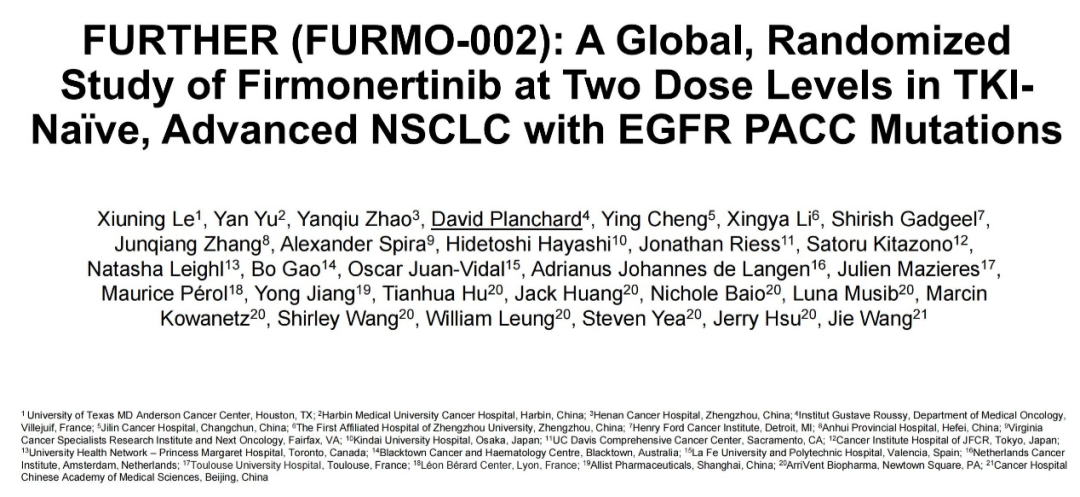 对于携带EGFR PACC突变且既往未接受过靶向治疗的NSCLC患者,伏美替尼加倍剂量显示了良好的抗肿瘤活性和可接受的安全性。