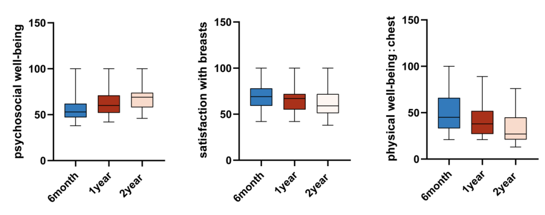 图1患者术后6个月、1年和2年完成BREAST-Q评分量表结果