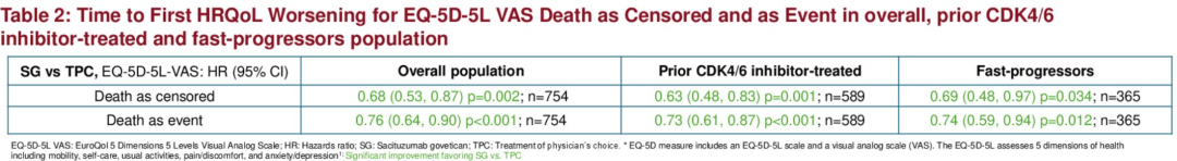 图5.EQ-5D-5L VAS评分:SG较TPC的到HRQoL首次恶化时间风险比