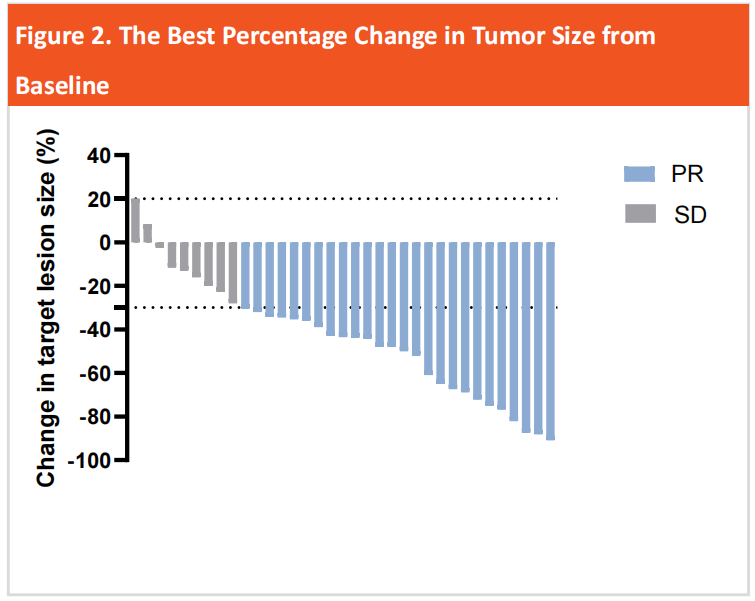研究达到了第一阶段的主要终点,ORR达74.3%(26/35),包括26例部分缓解(PR)和9例疾病稳定(SD)。34例手术患者中无患者达到病理完全缓解(pCR)。所有35例患者都报告了治疗相关不良事件(TRAEs),≥3级治疗相关不良事件(TRAEs)的发生率为65.7%(23/35),最常见的≥3级TRAEs包括中性粒细胞减少(48.6%,17/35)、白细胞减少(28.6%,10/35)、贫血(22.9%,8/35)、腹泻和血小板计数减少(各11.4%,4/35)。对13例患者进行了以G-CSF为主的支持治疗后,未发生≥3级的中性粒细胞减少AE,无间质性肺病(ILD)及治疗相关死亡报道。