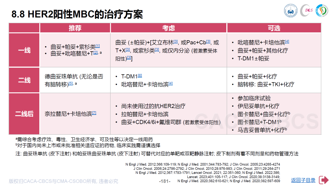 首先,在HER2阳性乳腺癌领域,基于EMERALD研究结果,《CBCS小红书》2025版新增了曲妥珠单抗+帕妥珠单抗+艾立布林作为一线方案,为HER2阳性乳腺癌提供了新的治疗选择。