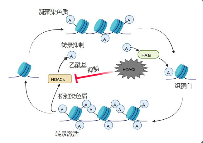组蛋白去乙酰化酶(histonedeacetylase,HDAC)是一类影响肿瘤表观遗传学改变的关键修饰酶,其功能是去除组蛋白的乙酰化酶-N-乙酰化赖氨酸中的乙酰基。HDAC参与肿瘤细胞生长与表达调控等诸多过程,是表观遗传学中抗肿瘤药物设计的重要靶点[4]。HDAC介导的组蛋白乙酰化水平降低是常见的表观遗传异常,靶向抑制HDAC可逆转乙酰化失调[5]。HDACi通过调节组蛋白乙酰化水平,影响染色质结构和基因转录,从而实现对肿瘤细胞生长和增殖的抑制。对于表观遗传学异常导致的多种内分泌耐药模式,该类药物在乳腺癌治疗领域展现出了一定的潜力[6]