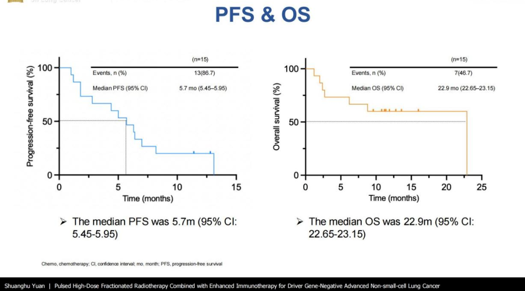 最终,研究共入组23例患者,12个月的ORR为62%,中位PFS为15.6个月,PD-L1表达在50%~89%和90%~100%的患者,中位PFS分别为6.97个月和23.41个月,中位OS为53.4个月。