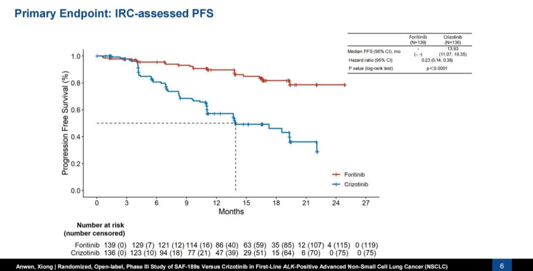 SAF-189s或克唑替尼一线治疗ALK融合阳性晚期NSCLC患者的疗效及安全性:一项随机、开放标签、III期临床研究