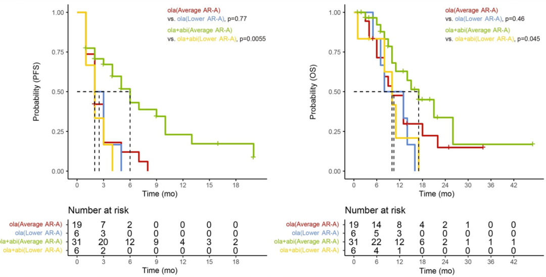 杨斌教授:如前所述,我们在真实世界中观察到雄激素受体信号通路抑制剂与PARP抑制剂之间存在协同作用。在今年ASCO GU入选的研究中,我们进一步分析了雄激素受体信号通路在奥拉帕利单药治疗以及奥拉帕利联合阿比特龙治疗中的意义。研究结果提示,对于接受奥拉帕利单药治疗的患者,存在雄激素受体基因突变患者的PFS和OS更差(相较于无AR基因突变的患者)。这也提示,无AR突变患者可能更适合奥拉帕利单药治疗。