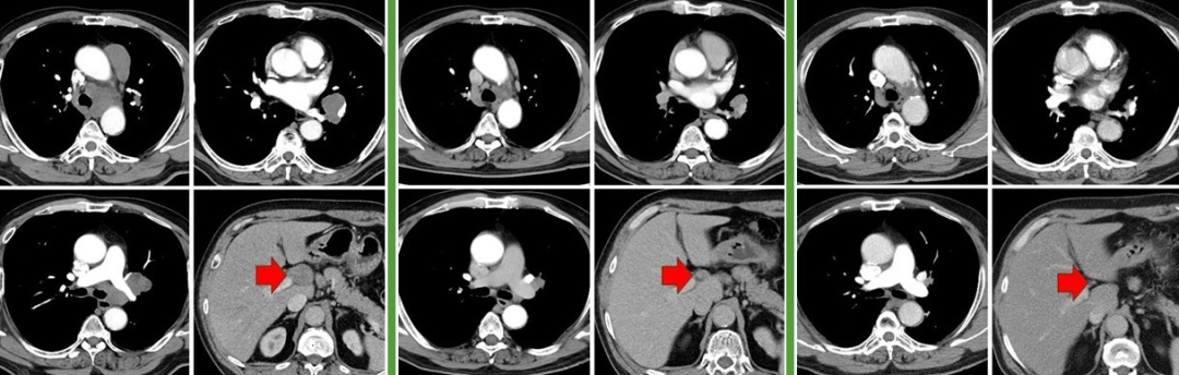 图:左起依次为基线、免疫联合化疗4周期后、末次随访