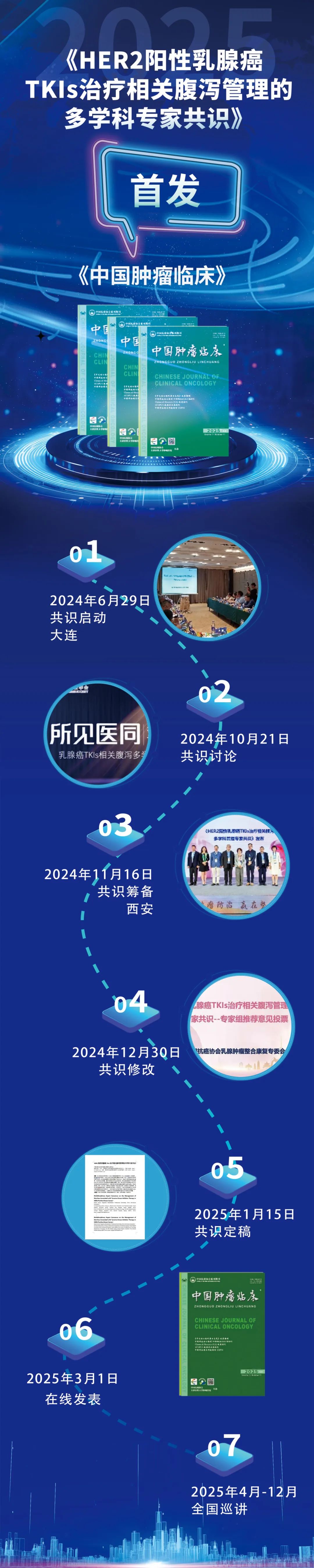 为了有效管理腹泻,保证抗HER2-TKIs药物疗效并提高患者生活质量,中国抗癌协会乳腺肿瘤整合康复专委会联合乳腺肿瘤、药学、消化内科、中医、营养等领域的顶级专家,参考国内外指南和文献,结合临床实践,共同制定首部针对HER2阳性乳腺癌TKIs治疗相关腹泻的多学科管理专家共识。这一共识的制定旨在为临床提供科学、规范的管理策略,优化患者治疗体验和疗效。