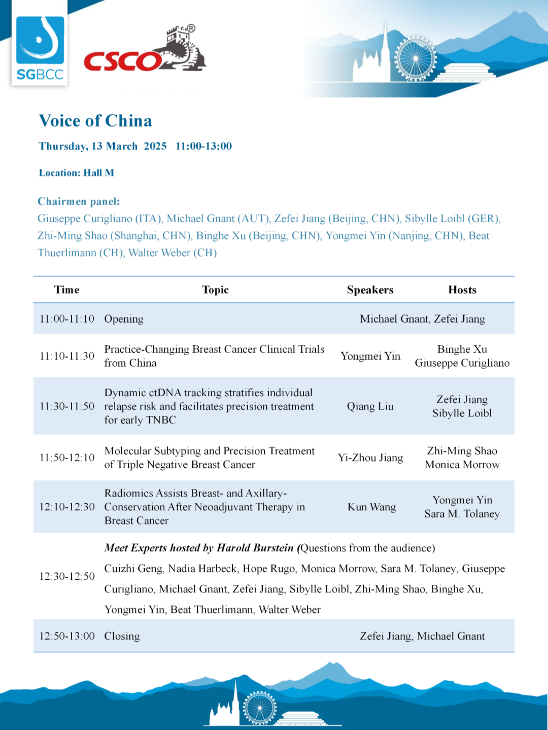 此次大会上,SGBCC将与中国临床肿瘤学会乳腺癌专业委员会(CSCO BC)携手,于3月13日(周四)11:00~13:00(北京时间18:00~20:00)精心打造“中国之声”专场。届时,来自中国各地的乳腺癌领域权威专家,将齐聚一堂,向世界展示中国在乳腺癌临床研究方面的卓越成果与特色实践。同时,还将有多位国际顶级专家参与其中,共同交流探讨,为全球乳腺癌诊疗事业贡献智慧。这不仅是中国乳腺癌研究成果的集中展示,更是中国深度参与全球乳腺癌诊疗事业、推动国际合作创新的有力见证。让我们共同期待,在SGBCC与CSCO BC的携手努力下,开启全球乳腺癌治疗的新篇章,造福更多患者。