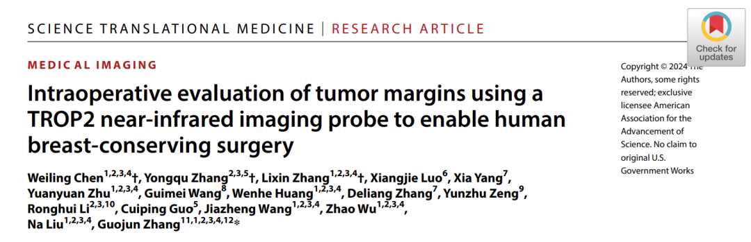 研究题目:Intraoperative evaluation of tumor margins using a TROP2 near-infrared imaging probe to enable human breast-conserving surgery