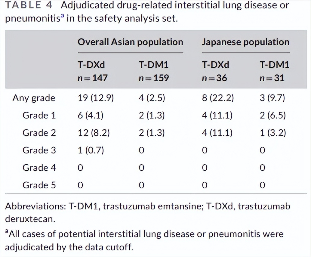 DESTINY-Breast03研究亚洲人群药物相关ILD/肺炎表现