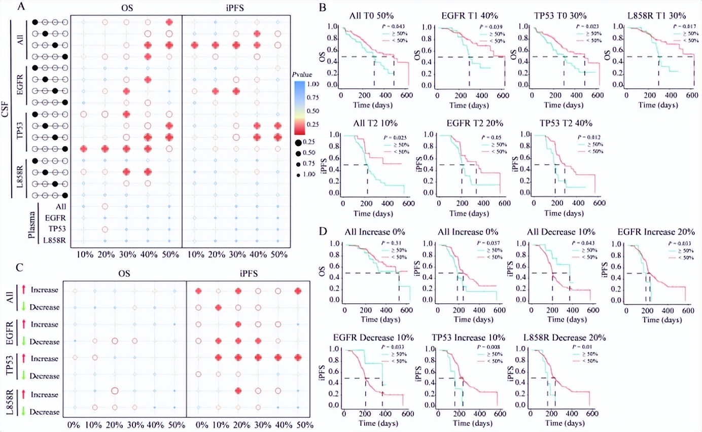 本研究纳入2022年9月23日至2024年6月1日期间在南京医科大学附属脑科医院就诊的125例肺腺癌(LUAD)伴LM患者。所有患者均植入Ommaya储液囊,用于颅内给药和CSF采集。每个治疗周期结束时评估整体临床反应。基线时分别获取125例CSF和血液样本,治疗期间共收集176例CSF样本。所有样本均进行靶向二代测序,并检测基线与各时间点的CSF及血液癌胚抗原(CEA)水平。基于生物信息学方法,分析脑脊液来源的ctDNA在临床疗效评估和患者预后中的预测能力。