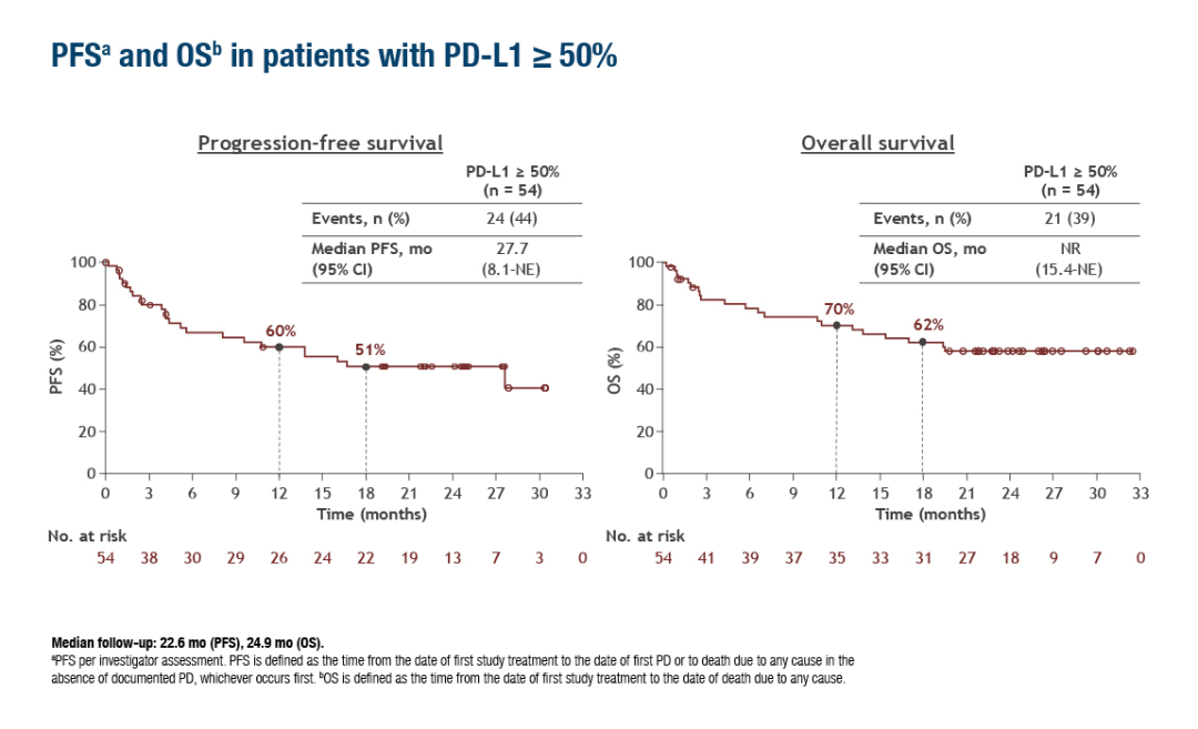 图1:KRYSTAL-7试验中adagrasib联合帕博利珠单抗在晚期/转移性KRAS G12C突变NSCLC中的生存获益(摘要号5MO)