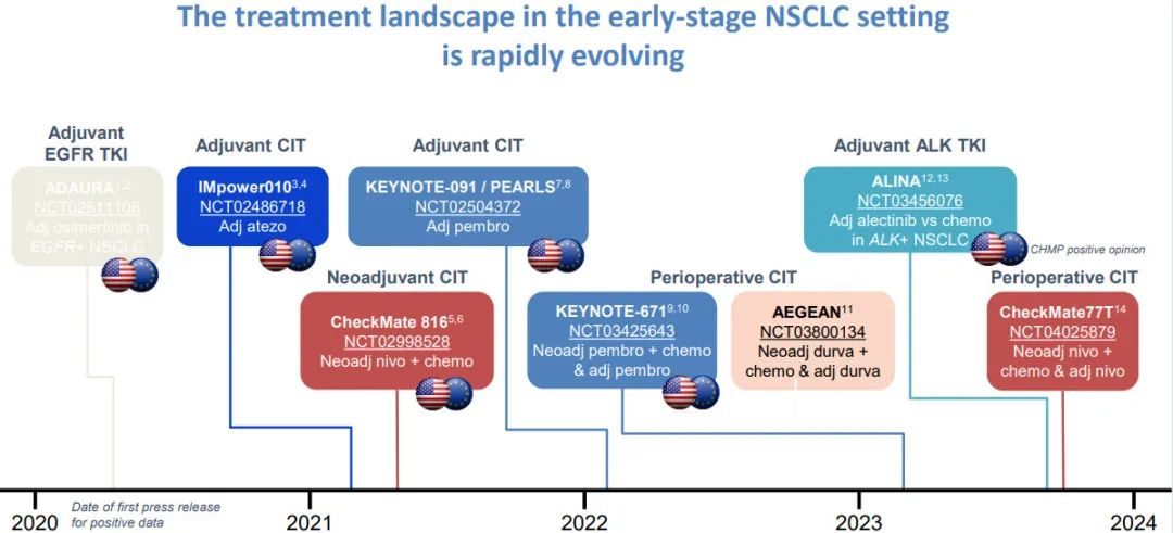 以上6个临床III期试验证明,新辅助免疫+化疗的治疗模式术后并发症发生率与单纯化疗组相近,围术期免疫治疗在可切除非小细胞肺癌中具有可控的安全性。