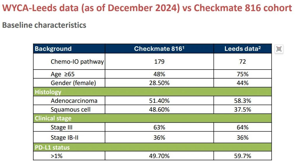 表1:WYCA-Leeds数据库和Checkmte-816研究患者基线特征