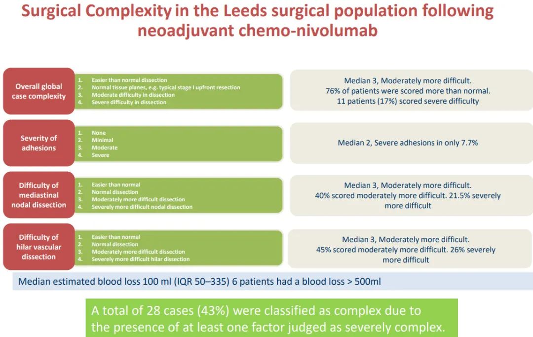图2.新辅助化疗-纳武利尤单抗治疗后Leeds外科人群的手术复杂性