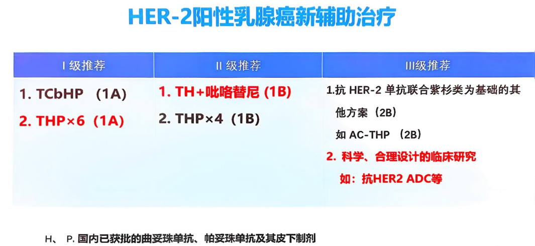 在HER2阳性新辅助治疗方面,基于HELEN-006临床研究及部分真实世界数据,I级推荐中,THP×6治疗方案由原来的2A类证据更新为1A。