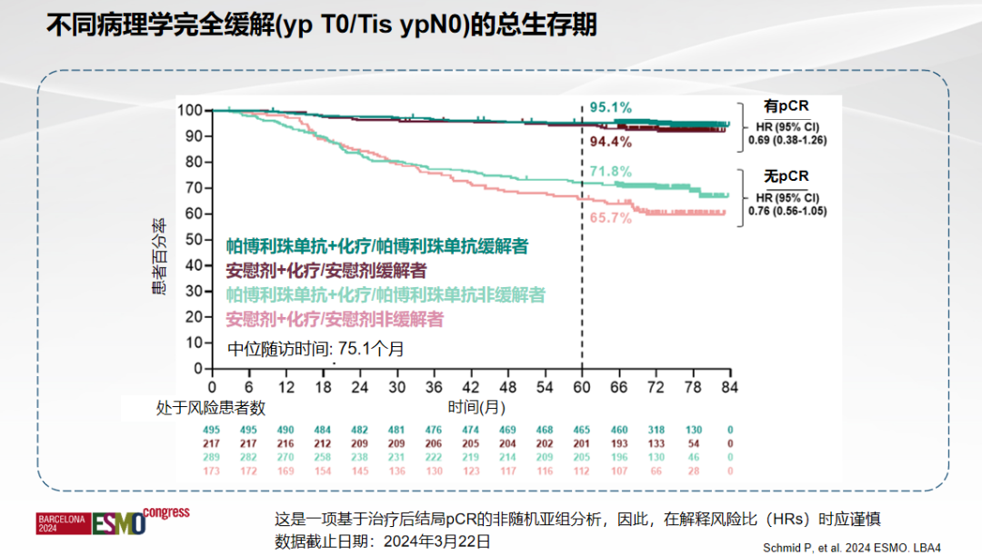 进一步分析发现,未达病理完全缓解(non-pCR)患者,免疫联合组生存的绝对获益更为突出(5年OS:联合组71.8%vs.化疗组65.7%)[11-13]