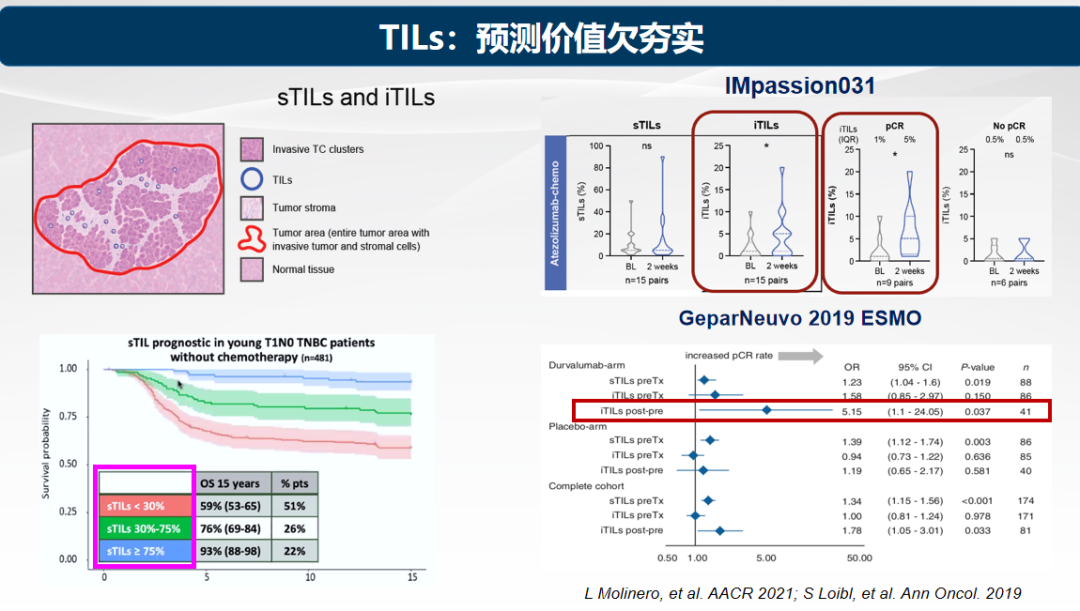 以PD-L1表达为例,在KEYNOTE-522研究中,即使PD-L1综合评分(CPS)<1的患者,依然能从帕博利珠单抗治疗中获益,这表明PD-L1并非独立可靠的预测因子。TIL虽然与免疫治疗疗效有一定相关性,但其检测的标准化问题尚未得到很好解决,影响了其预测价值。而乳腺癌整体突变负荷相对较低,TMB在乳腺癌免疫治疗中的作用也较为有限。