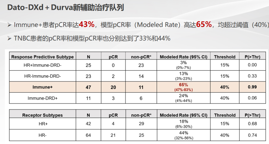 除了传统化疗药物,新兴药物如抗体偶联药物(ADC)与免疫治疗的联合应用展现出巨大潜力。以Dato-DXd为例,在I-SPY 2.2试验中,免疫标志物阳性(Immune+)患者的pCR率达到43%。这种“双靶+免疫”的新方案,为乳腺癌新辅助治疗开辟了新的方向,有望进一步提高治疗效果,改善患者预后[18-20]