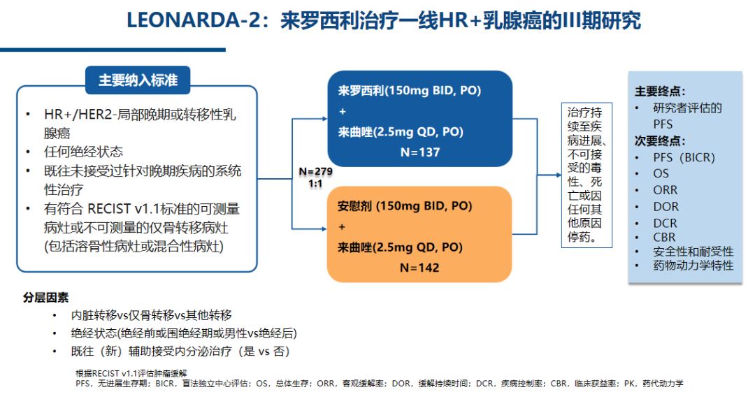 2、Xichun Hu,et al.LEONARDA-2:Lerociclib plus letrozole versus placebo plus letrozole in HR+/HER2-advanced or metastatic breast cancer.2024 ASCO abstract 1052