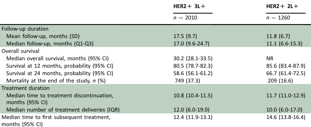 △研究人群(HER2+3L、HER2+2L)的随访特征
