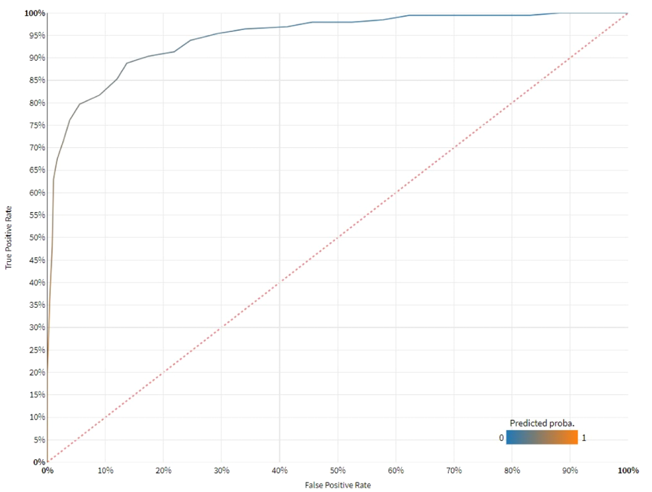 DCIS的存在、DCIS成分(主要成分vs.次要成分)的百分比、DCIS分级、肿瘤多发以及ER状态是预测HER2状态的四大重要变量。对于该数据集,受试者工作特征曲线下面积(AUC)得分为0.95。