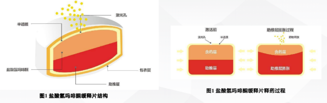 图1.盐酸氢吗啡酮缓释片的结构及释药原理(引自讲者会议幻灯)