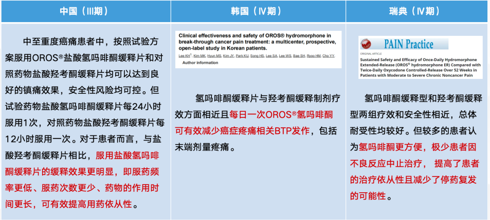 表2.国内外氢吗啡酮缓释片临床研究对比