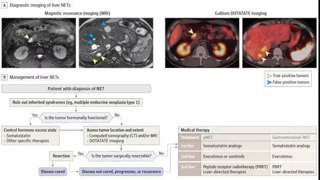 诊断NET后,应排除遗传综合征(例如MEN1 multiple endocrine neoplasia type 1)。初始治疗应包括控制激素过量状态(如果存在)和确定疾病部位和范围。