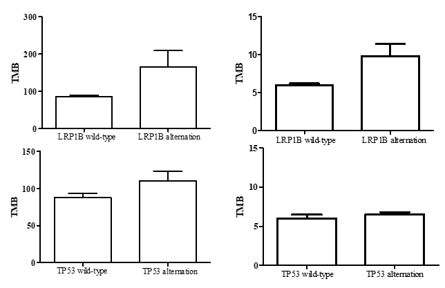 LRP1B(低密度脂蛋白受体相关蛋白1B)是低密度脂蛋白受体家族的成员。已有研究发现,LRP1B基因在许多人类肿瘤组织中失活,提示该基因是一个潜在的肿瘤抑制基因。TP53基因是最为常见的抑癌基因,其编码的抑癌蛋白p53,常在多个瘤种中发生表达缺失。