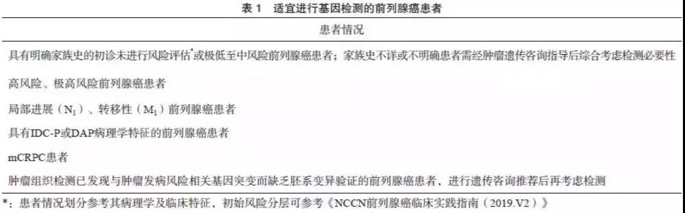 评估是否适宜进行基因检测需要结合前列腺癌患者的家族史、临床及病理学特征(表1)。其中家族史需要考虑: