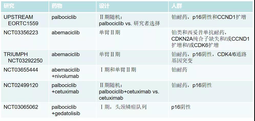 表1. CDK4/6抑制剂在头颈鳞癌的临床试验