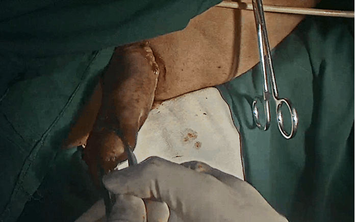 尤其是肠系膜相对肥厚的患者,此时游离的位置足够低,但肠系膜游离的长度不够长,即“瘦身”长度不够,外翻是翻到肛门外了,但是由于“瘦身”长度不够,凯图夹持组织过多,导致闭合困难,最后不得已还要将肠管再次送回腹腔再次游离。