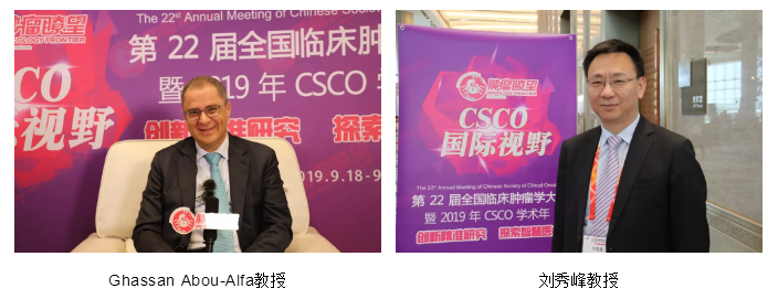 编者按:肝癌是一种严重威胁全球人民健康和生命安全的恶性肿瘤,其早期诊断、复发转移治疗一直是研究热点和临床难点,免疫治疗时代的到来为肝癌治疗带来了曙光。2019年9月19日,在第22届全国临床肿瘤学大会暨2019年CSCO学术年会的现场,《肿瘤瞭望》就“肝癌的诊疗现状及未来发展”主题采访了国际胃肠道肿瘤学会(ISGIO)候任主席、纪念斯隆·凯特林癌症中心Ghassan Abou-Alfa教授,CSCO肝癌专家委员会秘书长、解放军东部战区总医院刘秀峰教授,现整理如下,以飨读者。