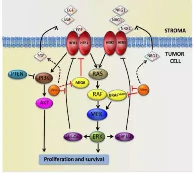 HER2状态在mCRC中的预后价值仍存在争议,既往研究结果不一致。HER2扩增影响抗EGFR治疗耐药,HER2激活涉及到抗EGFR治疗的原发性/获得性耐药,因而HER2可作为抗EGFR治疗耐药的晚期RAS野生型CRC患者的潜在治疗靶点。