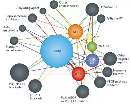 DNA损伤修复功能(DNA damage response,DDR)异常是肿瘤发生发展过程中的重要推动因素,乳腺癌伴有的BRCA及同源重组修复(Homologous recombination repair,HRR)相关基因的突变的患者对DNA损伤修复的化疗(铂类)和靶向药物(如奥拉帕利)敏感。目前PARPi在乳腺癌的探索主要集中在PARPi获益人群的探索(BRCA至HRD)及PARPi与化疗/免疫治疗两个方向。