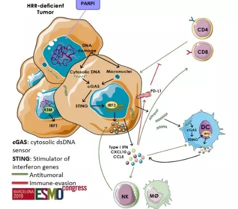 图2. 奥拉帕利诱导免疫细胞浸润及PD-L1表达机制
