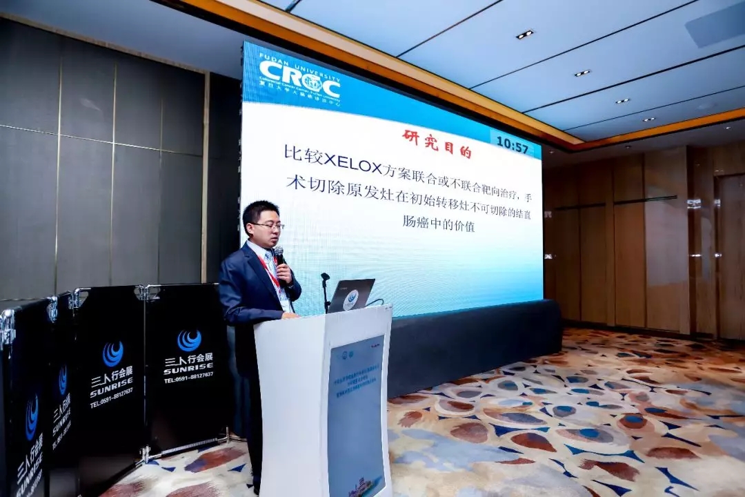 浙江大学医学院附属第二医院李军教授汇报了由丁克峰教授牵头的手术联合术后选择性放化疗对比传统术前放化疗序贯手术模式治疗MRI预测阴性环周切缘的局部进展期直肠癌的多中心非劣效性前瞻性随机对照研究(PSSR),常规组为新辅助放化疗+手术+辅助化疗,实验组为术后CRM阳性使用以XELOX方案为基础的放化疗,该研究旨在阐明磁共振预测环周切缘阴性的局部进展期直肠癌是否可以免除常规放化疗,从而避免放疗带来的副作用同时不牺牲肿瘤学疗效。
