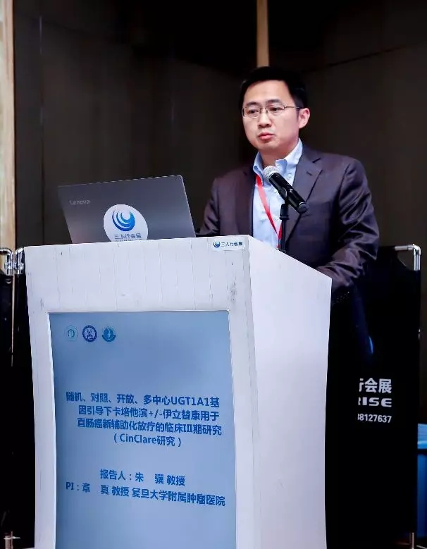 论坛第一环节首先由各中心对目前开展的临床研究进行汇报。首先由复旦大学附属肿瘤医院朱骥教授汇报了复旦大学附属肿瘤医院牵头的CinClare研究。既往的直肠癌新辅助治疗研究中,奥沙利铂被认为增毒不增效,而伊立替康能否提高新辅助治疗的疗效,同时毒性能够在可控范围之内,目前还不明确。该研究根据UGT1A1基因表型进行分层,对于不同基因型患者采用不同的剂量,中期研究结果显示新辅助治疗加入伊立替康可显著提高患者pCR率,期待该研究结果能够为未来临床实践提供指导。