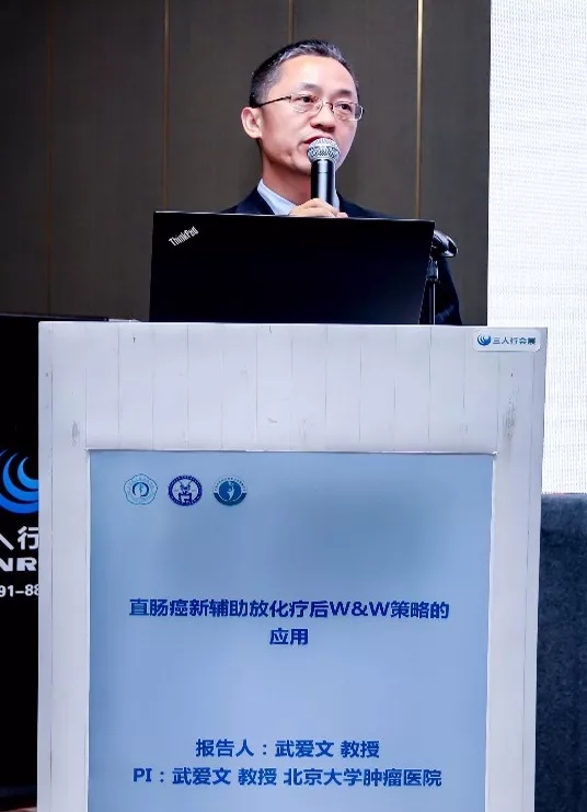 来自北京大学肿瘤医院的武爱文教授报告了直肠癌新辅助放化疗后W&W策略的应用。首先从国内外多项研究介绍了中低位直肠癌放化疗后达到CCR/near-cCR的患者采取等待观察疗法的可行性;随后对比了nCRT后观察等待疗法对比根治手术的优劣势;并分析了观察等待治疗失败的主要原因,以及临床上如何评估cCR和pCR,最后强调了密切随访的重要性。