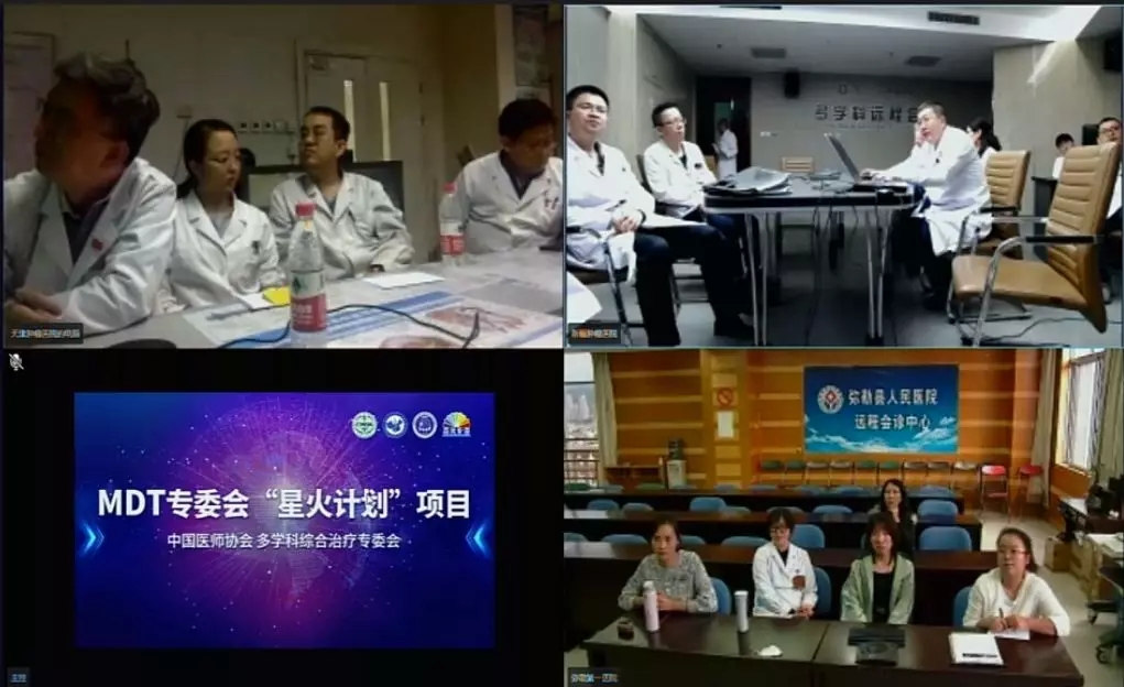 2019年10月17日,天津医科大学肿瘤医院MDT团队联合云南省弥勒第一医院和新疆肿瘤医院,开启“星火计划”-“开拓求索”远程MDT病例讨论,在梁寒教授的主持下,三家医院针对胃间质瘤、小肠间质瘤和胃间质瘤肝转移的病例进行深入交流。