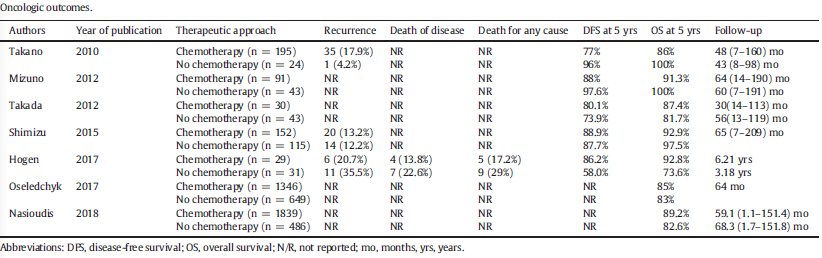 G.Bogani, A.Ditto, S.Lopez, et al. Adjuvant chemotherapy vs observation in stage I clear cell ovarian carcinoma:A systematic review and meta-analysis.