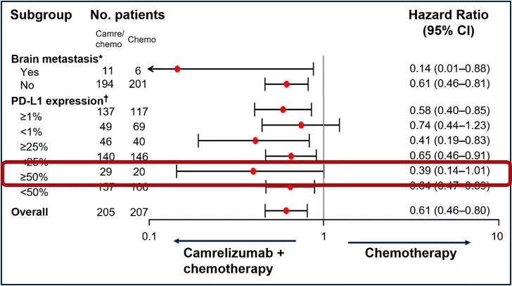 图3. 卡瑞丽珠单抗±化疗在PD-L1≥50%患者中的分析